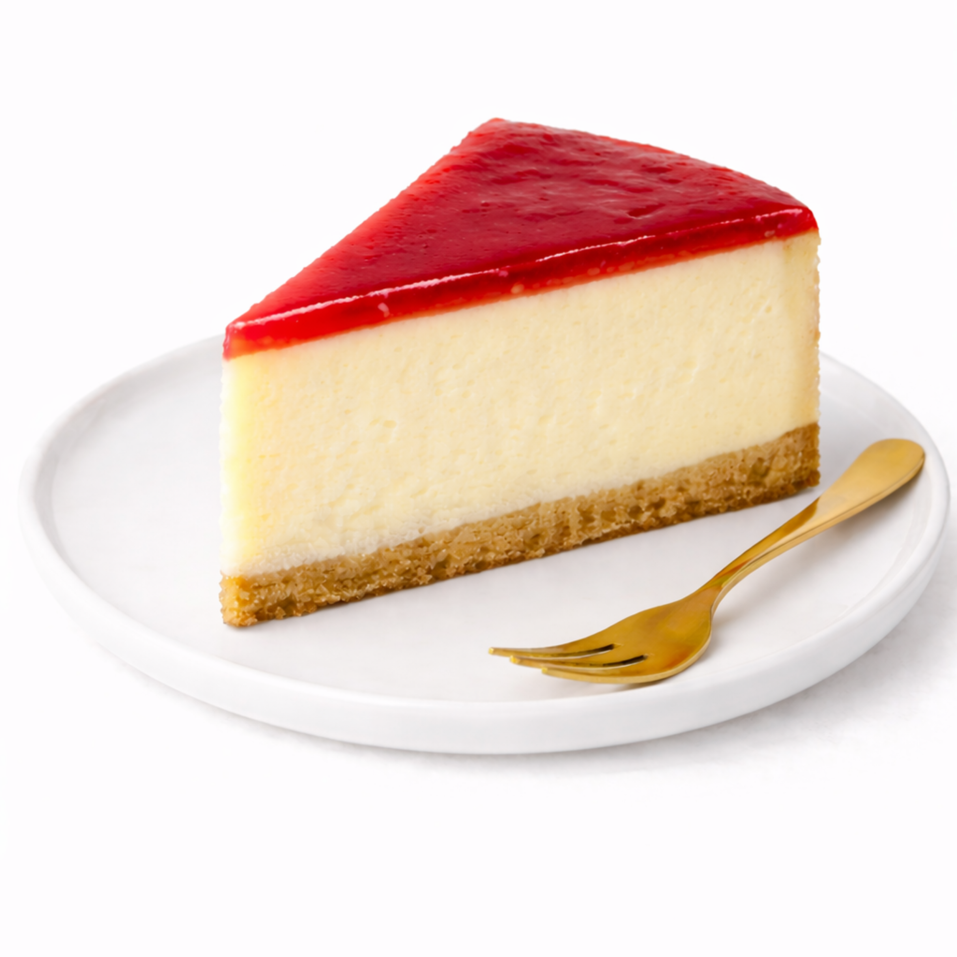 New York Cheesecake is een rijke en romige klassieker, bekend om zijn volle smaak en zachte, dichte textuur.