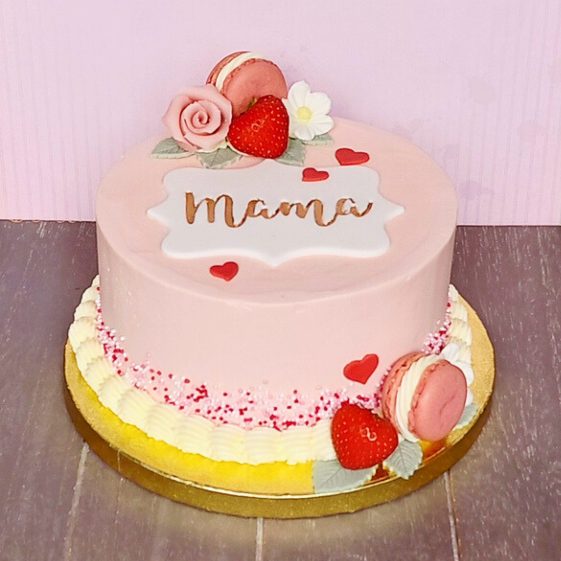 Deze Moederdag taart is speciaal ontworpen om te delen en te genieten. De combinatie van luchtige cake, frisse aardbeien en romige afwerking maakt dit een echte publieksfavoriet.